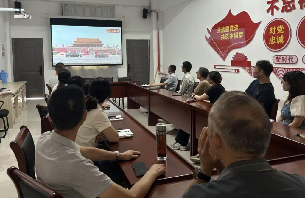 纪念活动开始前,材化公司的老师们早早地来到了集中收看地点,怀着崇敬的心情等待着活动的开始。收看过程中,全体教师凝神屏息,专注聆听,仿佛置身于大会现场,共同感受那跨越时空的历史回响与时代强音。