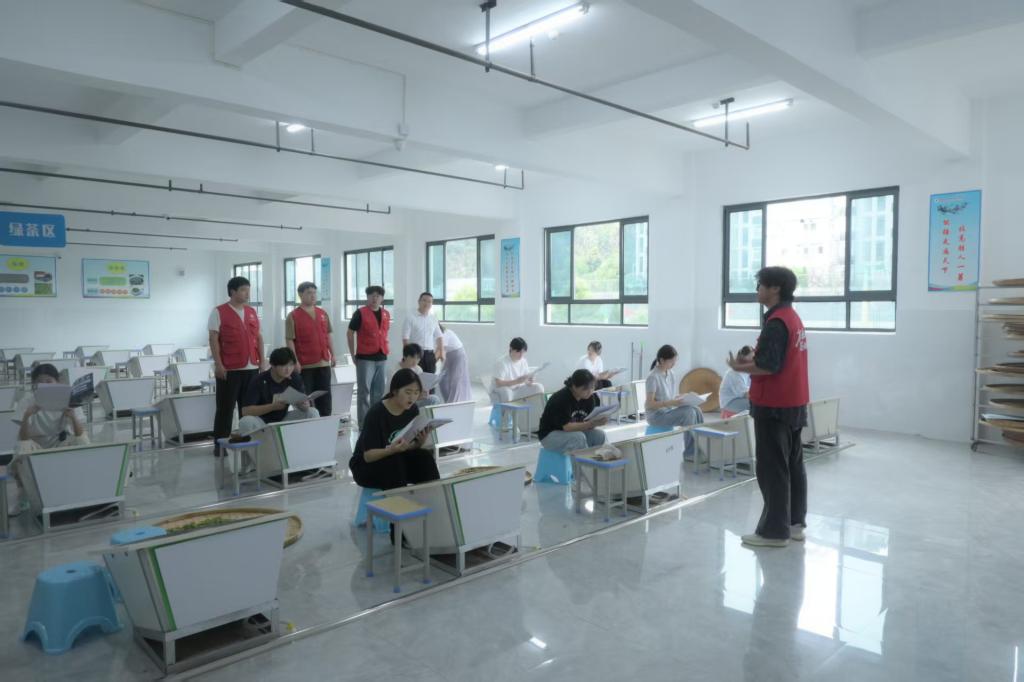 7月5日至8日,实践团联合千佛塔村村委会,组织部分留守儿童前往安庆大别山科技公司,开展为期4天的岳西翠兰手工加工工艺专项培训。在程冬青老师和志愿者的指导下,孩子们从茶叶鲜叶的筛选开始学起,逐步掌握摊青、杀青、揉捻、干燥等关键步骤,亲手制作出属于自己的第一罐岳西翠兰。团队成员全程陪伴,通过“理论讲解+分组实操+趣味竞赛”的方式,帮助孩子们攻克技术难点,还设计了“茶叶品质品鉴会”,让孩子们在对比中提升技艺认知。