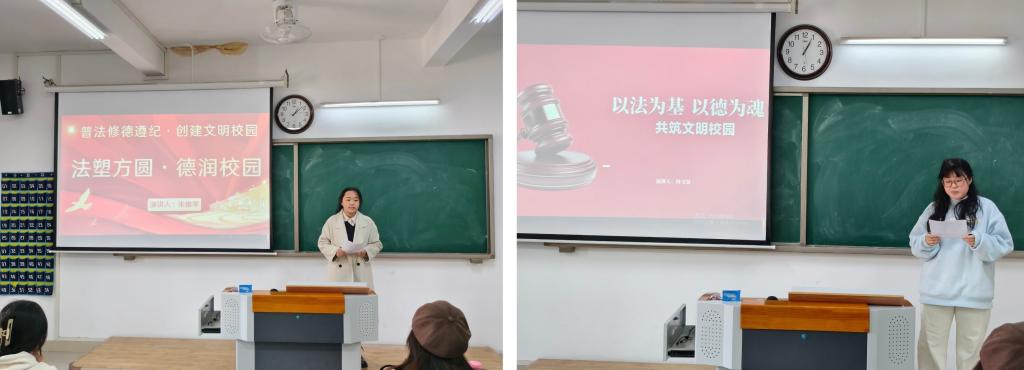 比赛前期,公司广泛动员、细致筹备,明确比赛规则与评分标准,搭建公平竞技的展示平台,吸引众多学子主动报名,选手们围绕主题深耕内容,结合法治案例、道德典故与校园生活实际,精心打磨演讲稿,为比赛做好充分准备。活动现场秩序井然,411、412 两个赛场同步推进,氛围热烈有序。